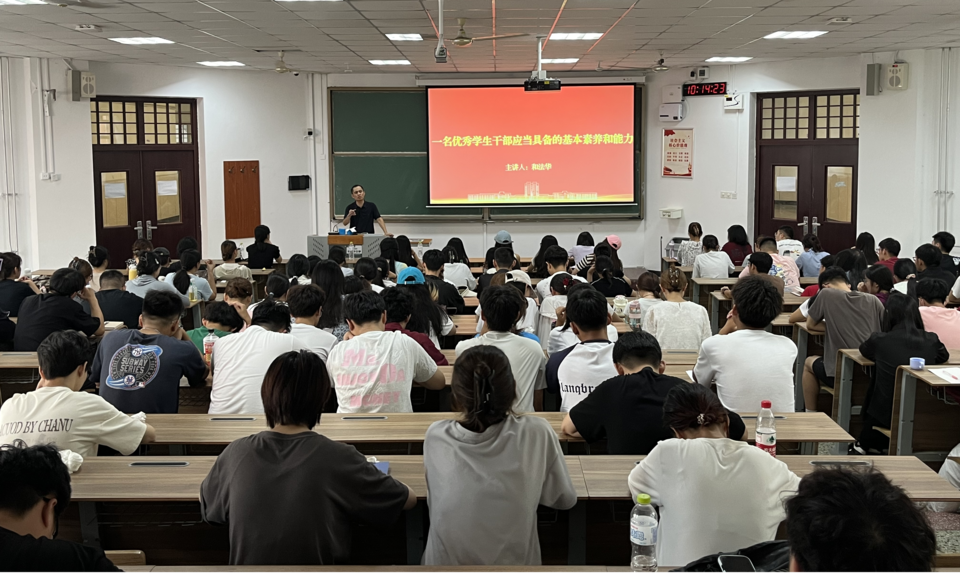 和法华针对学生干部的基本素养和工作作风问题,提出学生干部要注重英语和办公软件的学习,在工作中应注意自己的工作作风问题,应具备细心周到、认真负责的品质,穿着得当,并注重细节,认真完成自己负责的工作。他进一步阐述道,英语作为一门国际通用语言,在学术交流、资料查阅等方面有着重要的作用。而熟练掌握办公软件,如 Word、Excel、PowerPoint 等,则能大大提高工作效率,让各项任务的完成更加专业和高效。在工作作风方面,细心周到意味着要关注每一个环节,不放过任何一个可能出现问题的地方。无论是组织活动还是处理文件,都要反复检查,确保无误。认真负责则要求学生干部对自己承担的工作有强烈的使命感,不推诿、不敷衍,以高度的责任心去对待每一项任务。最后,和法华鼓励全体学生干部以更高的标准要求自己,不断提升基本素养,树立良好的工作作风,为学院的发展和同学们的成长贡献自己的力量。